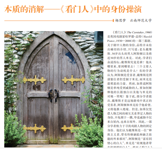 在哈罗德·品特的三幕剧《看门人》中,戏剧人物扑朔迷离的身份给文本增添了几分 神秘感。本文从朱迪斯·巴特勒的操演理论的视角探讨《看门人》中的戴维斯和阿斯顿 的身份,力图说明他们的身份并非先在、固定的,而是重复规范的产物。另外,他们在操 演的过程中通过戏仿实现对规范的偏离,建构迥异的身份。这种操演过程消解了身份的 本质主义属性,为读者寻找“真相”提供了更多的可能。