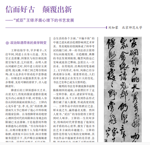 王铎幼始学书,早岁艰辛;天 启年间,同进士出身入仕途。其为 官正直清廉,因屡次与权臣相抗致 使官场失意,乞归故里。由明入清 山河破碎之时,同中进士的好友黄 道周、倪元璐,不堪亡国之辱含恨而 殉;家人也多在中原动乱中悲惨逝 去。旧朝老臣未能独善其身,在举 步维艰、无处可栖的窘状下,召入迎 降清军。