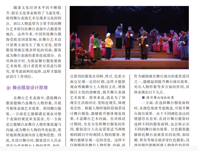 随着信息化时代的到来,社会文化呈现多样化发展趋势,且国际交 流愈加频繁。不同文化之间的碰撞愈发激烈,就此诞生了多元化的文化 艺术思潮。在这种环境下,舞台艺术获得了快速发展。舞台服装作为提 升舞台艺术效果的主要部分,具有极高的艺术价值和商业价值。面料作 为舞台服装重要的组成部分,直接关系着服装的呈现效果。