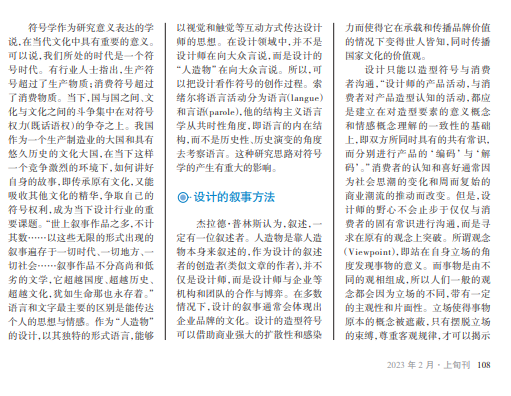 传统文化的传承在于创新, 设计的创新在于创造新的符号。 符号是思想和文化的承载,在设 计领域中,对传统文化的继承和 发展主要表现在创造新的设计造 型符号上。作用于人对人造物的 意向性,符号具有叙事性。设计 出来的人造物作为人与自然互动 的中介,以自我言说的形式进行 敞开式的表达。这种自然言语的 表达,更接近真理。设计造型符 号有独特的视觉语法,利用这种 自然的语法,对设计造型符号进 行更接近设计师意图定点的编 码,可以实现对传统文化的继承 和创新。